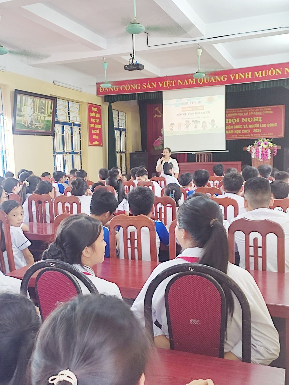 Thực hiện công tác truyền thông và giáo dục sức khỏe năm 2023 của Chi cục Dân số-KHHGĐ và Trung tâm y tế huyện An Dương. Chiều ngày 26/09/2023, Trường THCS Đặng Cương, huyện An Dương tổ chức truyền thông, tư vấn chuyên đề về chăm sóc sức khỏe sinh sản cho vị thành niên- thanh niên năm 2023.