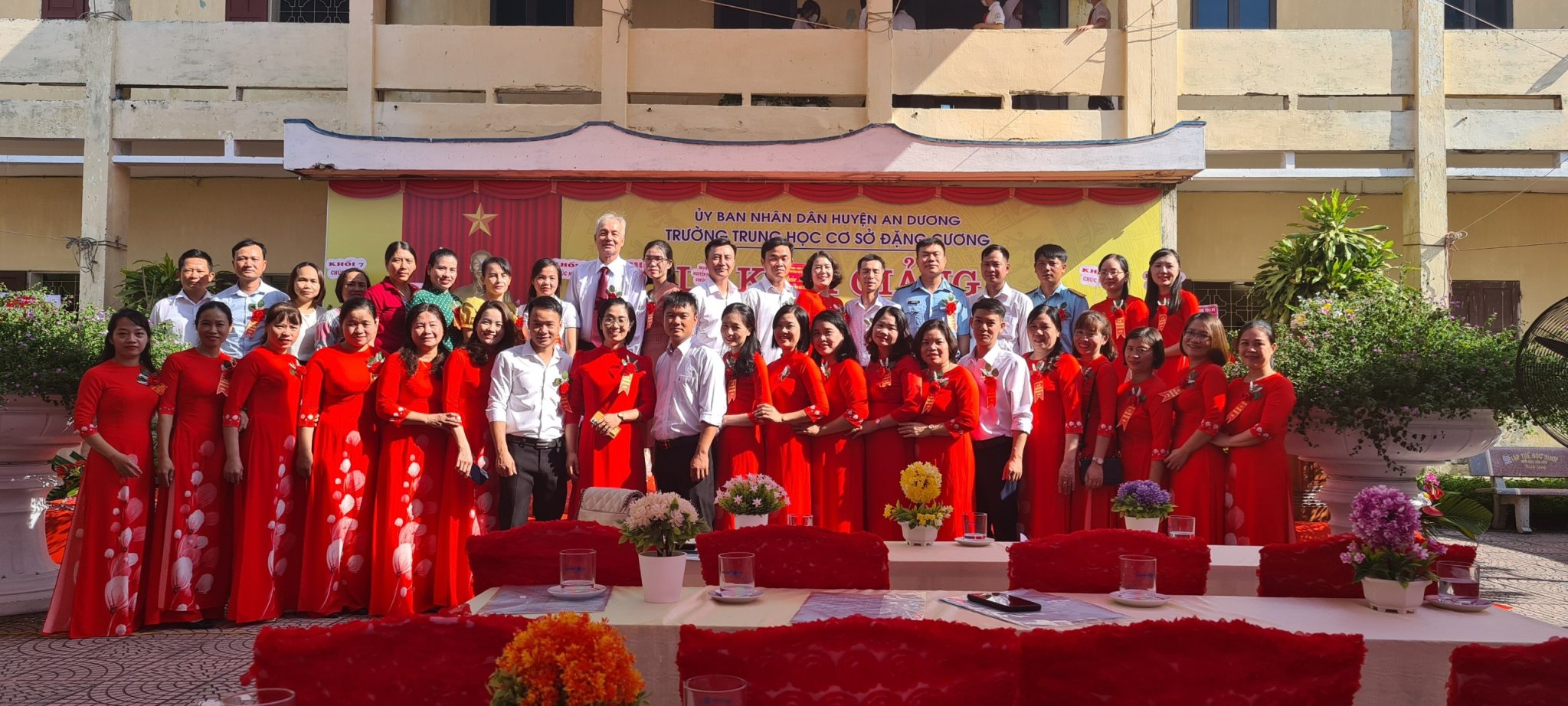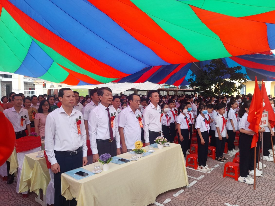 Về dự khai giảng cùng với thầy và trò nhà trường có đoàn công tác của huyện An Dương, Ông Hoài Viết Thảo – Uỷ viên BTV huyện uỷ - Phó chủ tịch HĐND huyện và các đồng chí lãnh đạo đạo các phòng ban của huyện uỷ - UBND huyện An Dương: các đồng chí trong đoàn công tác của UBND xã Đặng Cương .