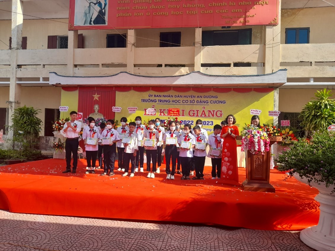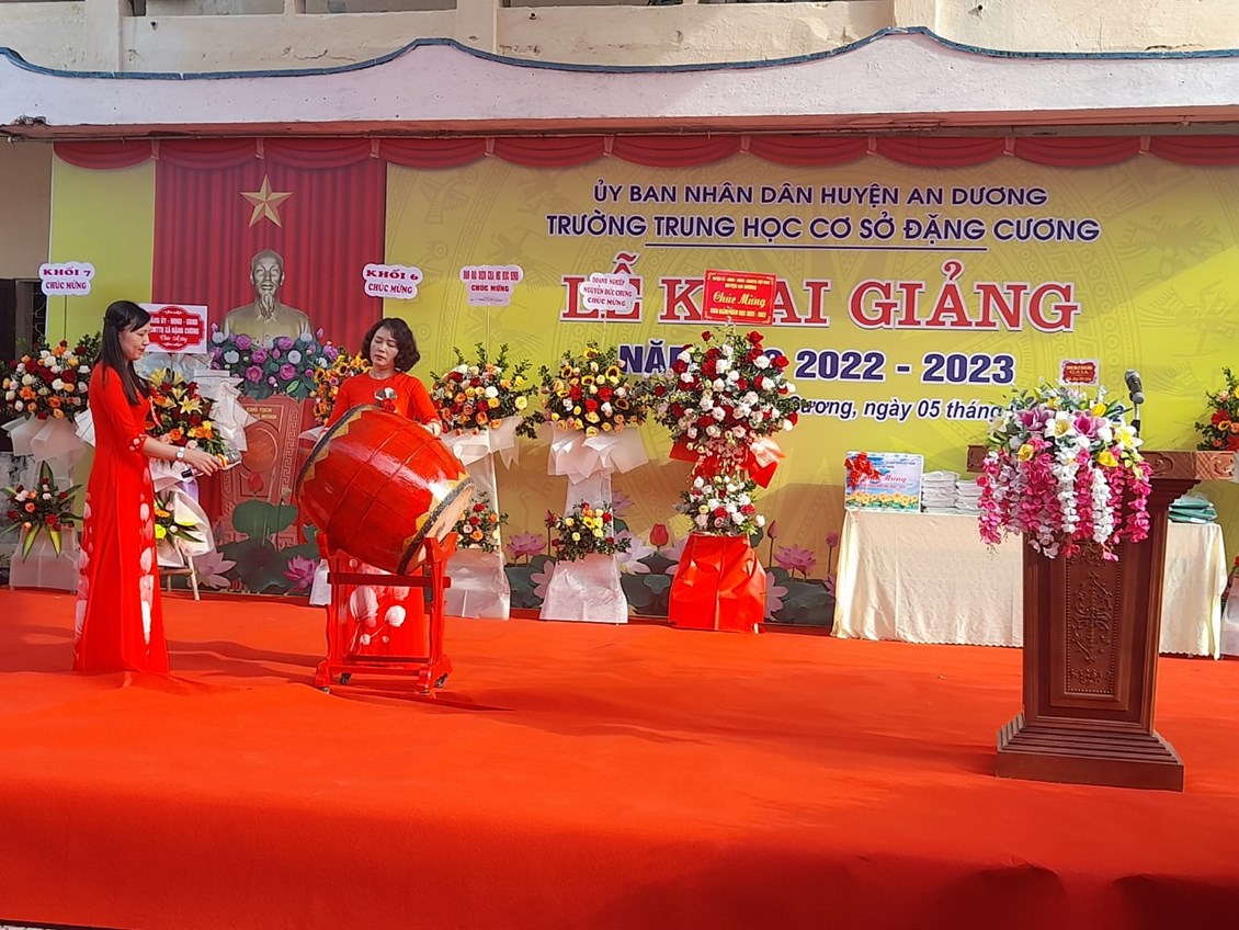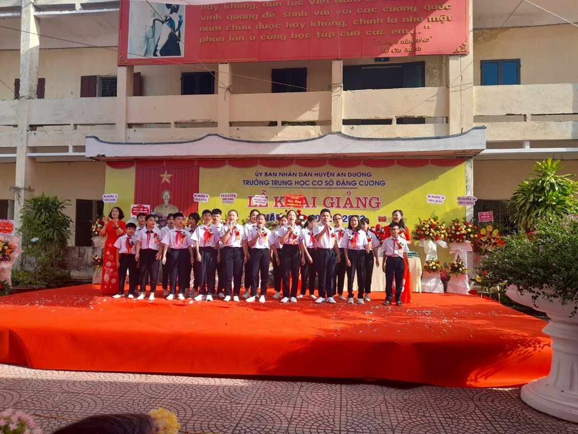 Hoà chung trong không khí tưng bừng phấn khởi của đất nước ta, dân tộc ta với những giây phút hào hùng của mùa thu lịch sử kỉ niệm trọng thể những ngày lễ lớn của đất nước, ngày hội toàn dân đưa trẻ tới trường. Hàng triệu Giáo viên, Học sinh, Sinh viên trên cả nước lại cùng nhau bước vào cuộc hành trình khám phá tri thức mới. Sáng ngày 5/9/2022, ngày Hội “Toàn dân đưa trẻ đến trường”, Trường THCS Đặng Cương long trọng tổ chức các hoạt động khai giảng năm học mới, năm học 2022 – 2023.