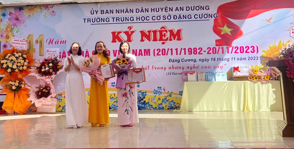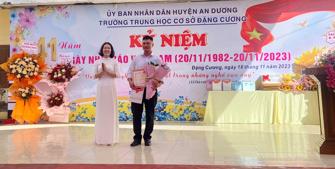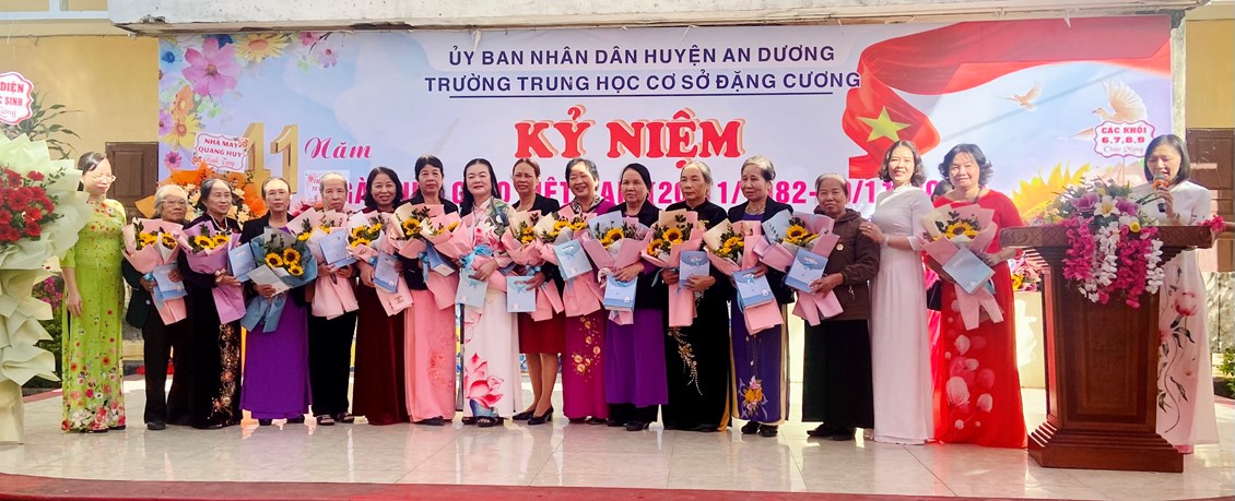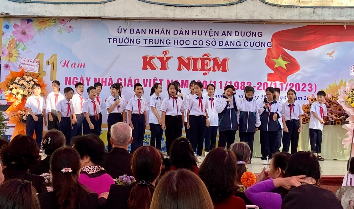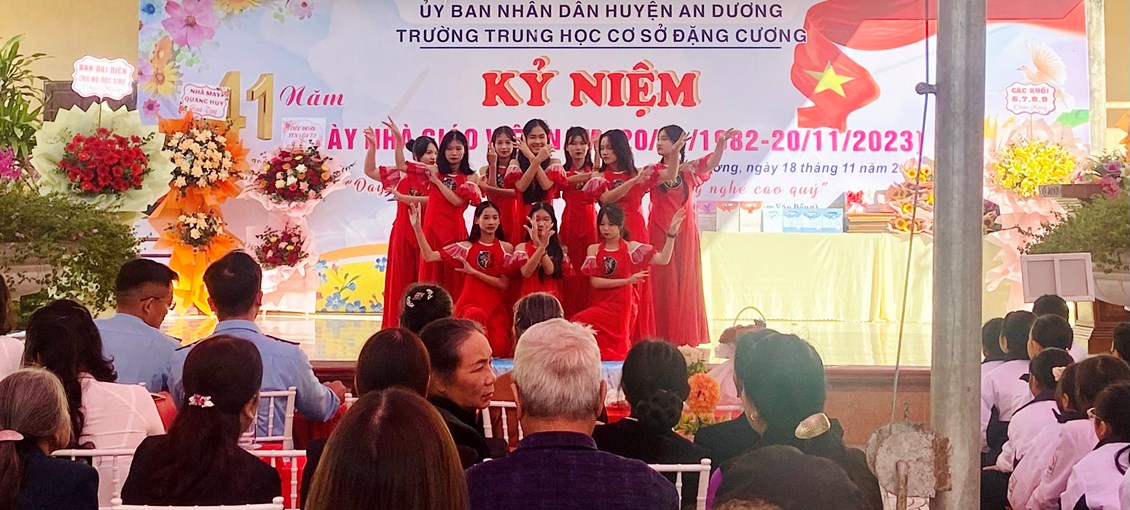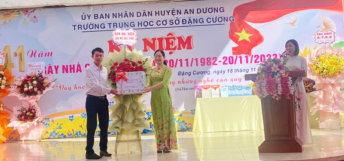 Sáng ngày 18/11/2023, hòa chung niềm vui của ngày tri ân nghề dạy học và tôn vinh các Nhà giáo trên mọi miền đất nước; trường THCS Đặng Cương, huyện An Dương long trọng tổ chức Kỷ niệm 41 năm Ngày Nhà giáo Việt Nam (20/11/1982 - 20/11/2023) và gặp mặt, tri ân các Nhà giáo đã gắn bó, công tác và nghỉ hưu tại nhà trường.