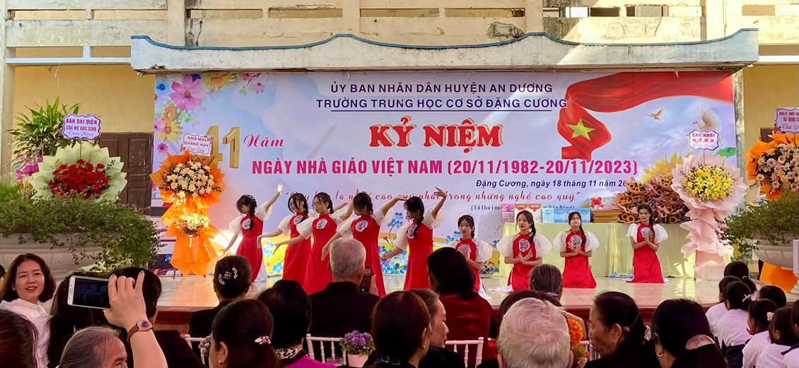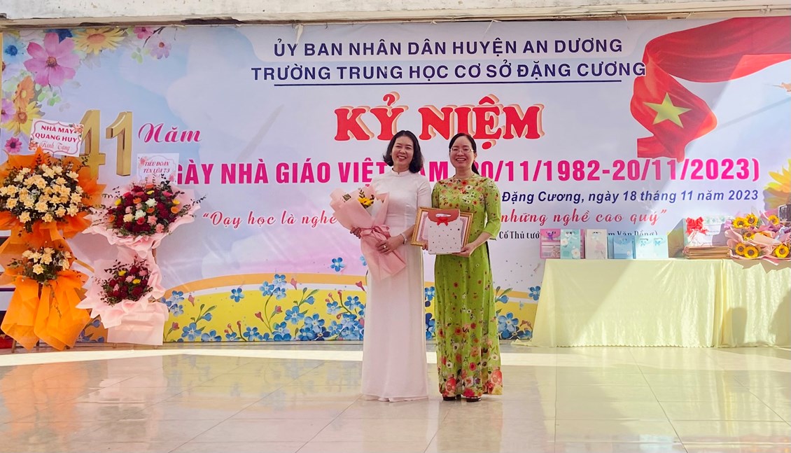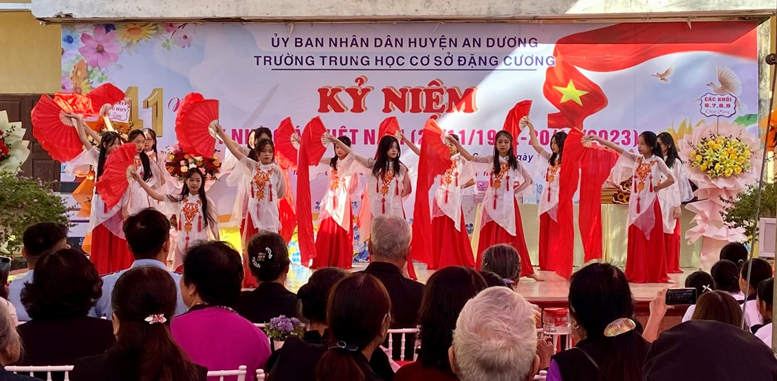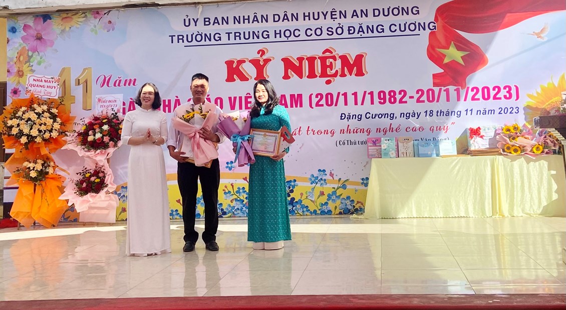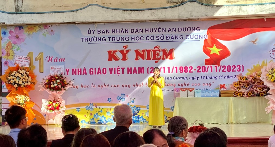 Sáng ngày 18/11/2023, hòa chung niềm vui của ngày tri ân nghề dạy học và tôn vinh các Nhà giáo trên mọi miền đất nước; trường THCS Đặng Cương, huyện An Dương long trọng tổ chức Kỷ niệm 41 năm Ngày Nhà giáo Việt Nam (20/11/1982 - 20/11/2023) và gặp mặt, tri ân các Nhà giáo đã gắn bó, công tác và nghỉ hưu tại nhà trường.