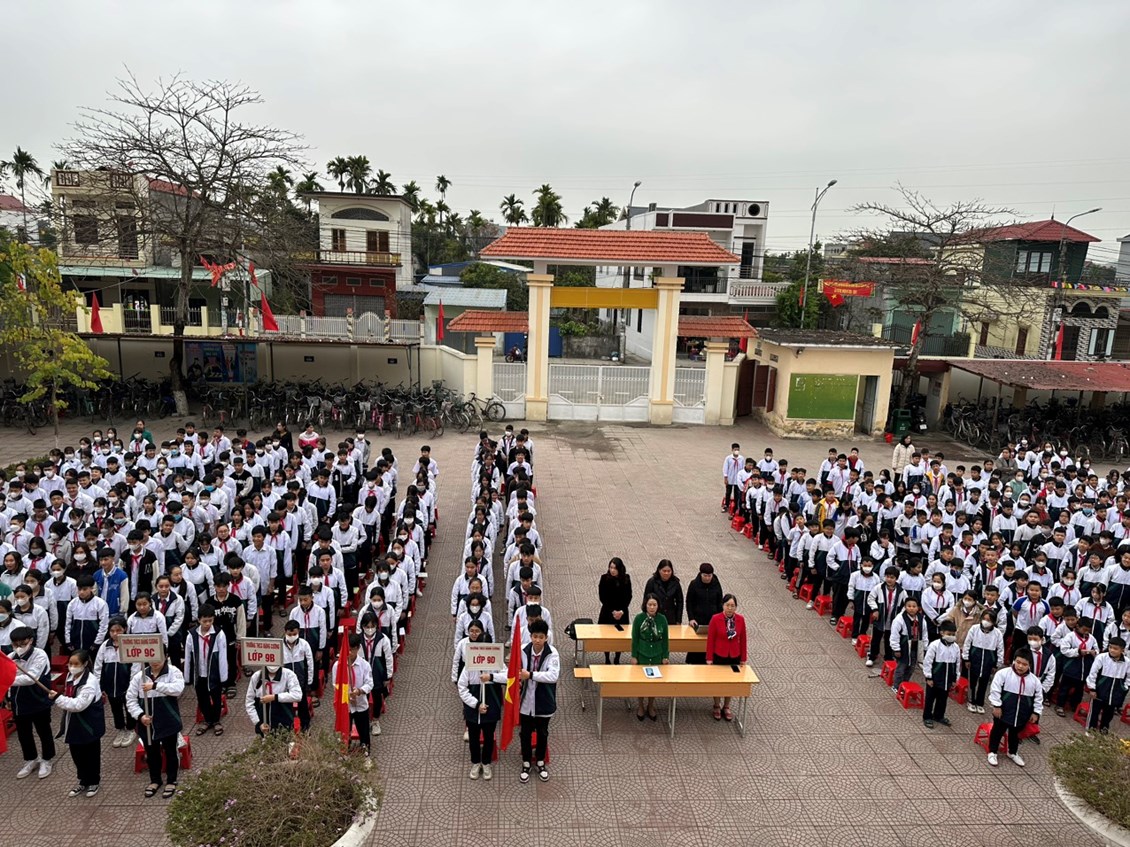 Cũng trong buổi chào cờ đầu tháng 3, nhà trường đã tuyên dương và trao phần thưởng cho các em học sinh khối 9 đạt thành tích xuất sắc trong kì thi khảo sát và trong thi học sinh giỏi đó là các em: Phan Việt Quang, Phạm Thị Yến Nhi,Nguyễn Hồng Nhung, Nguyễn Ngọc Diệp, Lê Thị Thu Phương là những học sinh lớp 9D. em Phạm Đức Thịnh là học sinh lớp 9A, em Nguyễn Thanh Xuân học sinh lớp 9C.