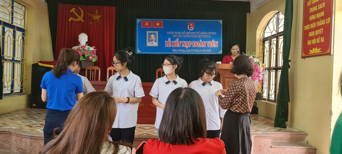 Nằm trong chuỗi hoạt động tháng thanh niên chào mừng kỷ niệm 92 năm ngày thành lập đoàn TNCS Hồ Chí Minh. Thực hiện kế hoạch số 01 ngày 17/02/2023, kế hoạch tháng thanh niên của BCH Đoàn xã Đặng Cương, xét đề nghị của chi đoàn trường THCS Đặng Cương tổ chức kết nạp lớp Đoàn viên mới.