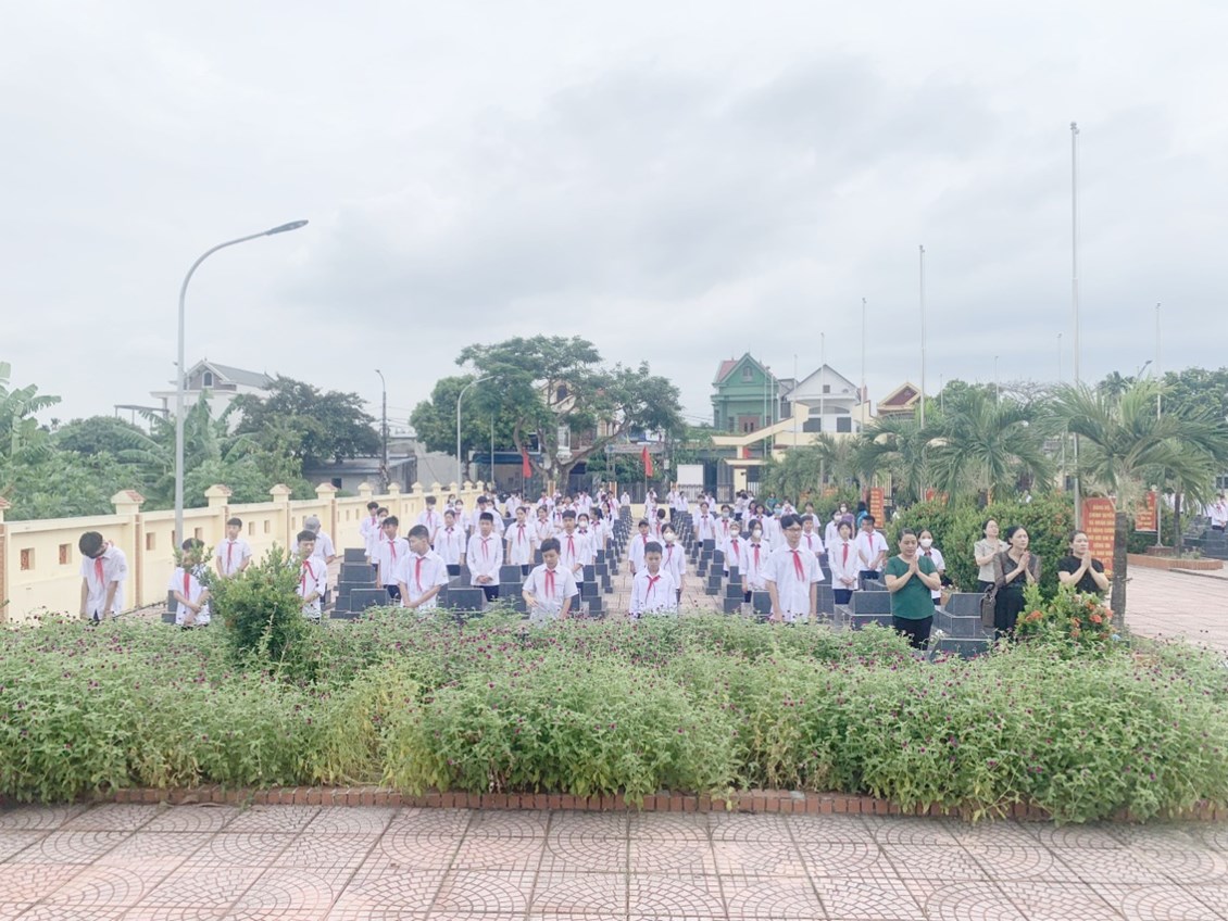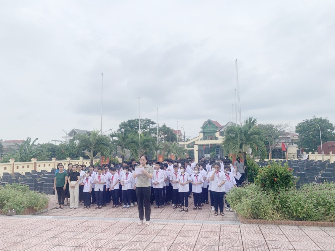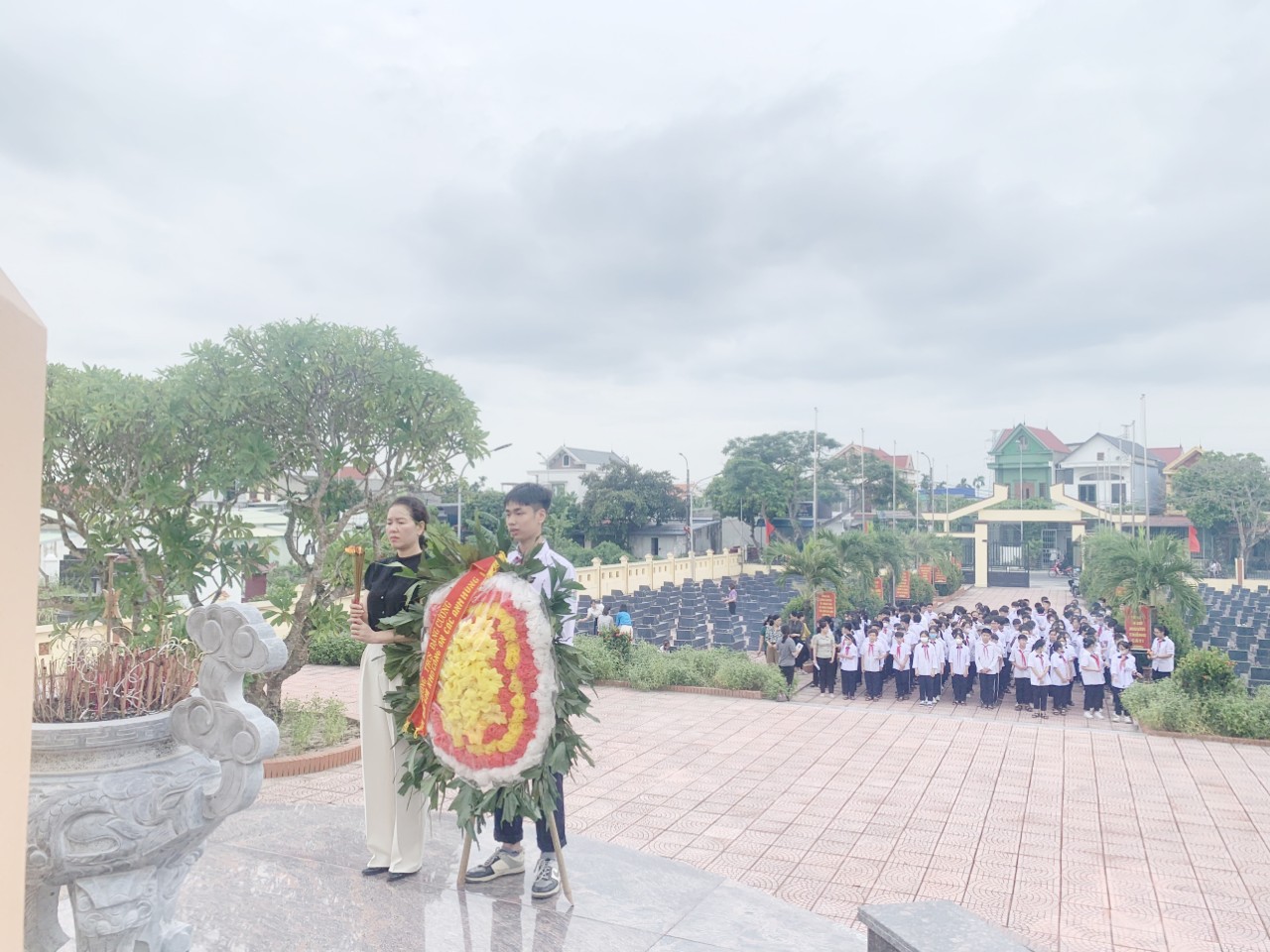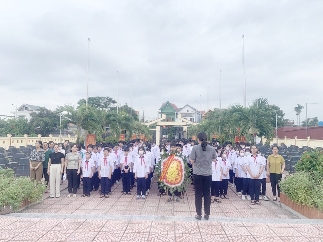 Dẫn đầu đoàn lễ viếng là cô giáo Nguyễn Thị Anh Vân - Bí thư chi bộ - Hiệu trưởng nhà trường. Cùng các thầy giáo, cô giáo trong nhà trường, các em học sinh lớp 9 và các em Đội viên tiêu biểu của Liên đội 6,7,8 tham gia hoạt động.