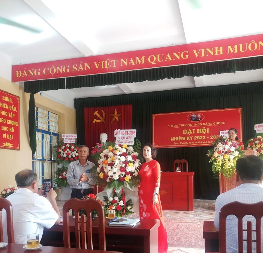 Được sự nhất trí của BTV Đảng uỷ xã Đặng Cương, sáng ngày 18/08/2022, chi bộ trường THCS Đặng Cương đã long trọng tổ chức Đại hội chi bộ nhiệm kỳ 2022-2025, nhằm đánh giá kết quả thực hiện Nghị quyết của Chi bộ nhiệm kỳ 2020-2022 và mục tiêu, phương hướng, nhiệm vụ nhiệm kỳ 2022-2025. Bầu chi uỷ, Bí thư, Phó bí thư chi bộ nhiệm kì 2022-2025. Rất vinh dự cho chi bộ nhà trường, về dự và chỉ đạo Đại hội có: