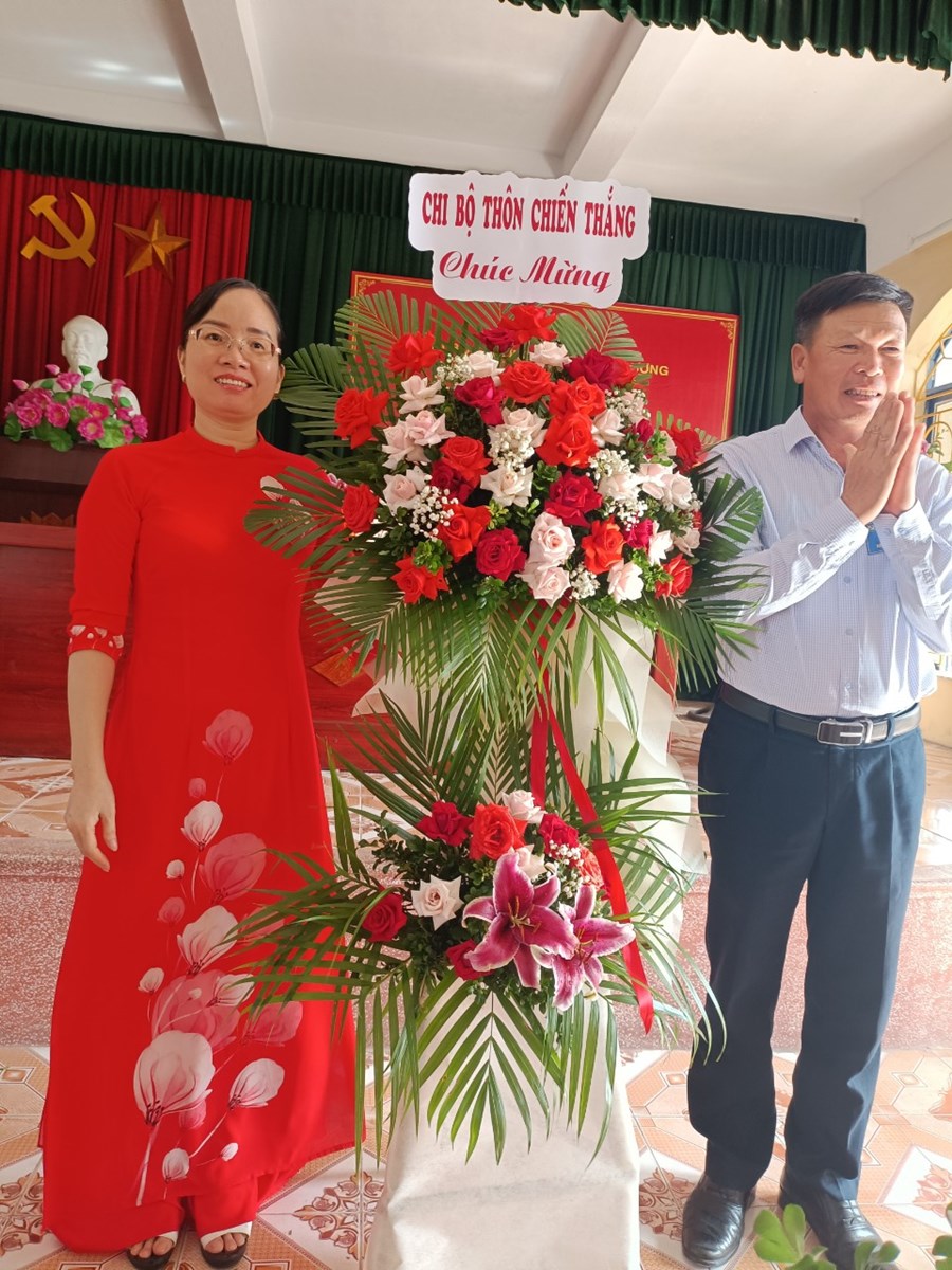Đ/c Nguyễn Thế Thuận – Huyện uỷ viên - Bí thư Đảng ủy xã Đặng Cương, Đc Phạm Văn Thứ - Phó bí thư thường trực Đảng - Chủ tịch HĐND xã. Đc Nguyễn Xuân Trưởng - Phó bí thư Đảng uỷ - Chủ tịch UBND xã cùng các Ban ngành đoàn thể, các Đc là Bí thư, trưởng thôn – thôn Chiến Thắng và toàn thể đảng viên của chi bộ.